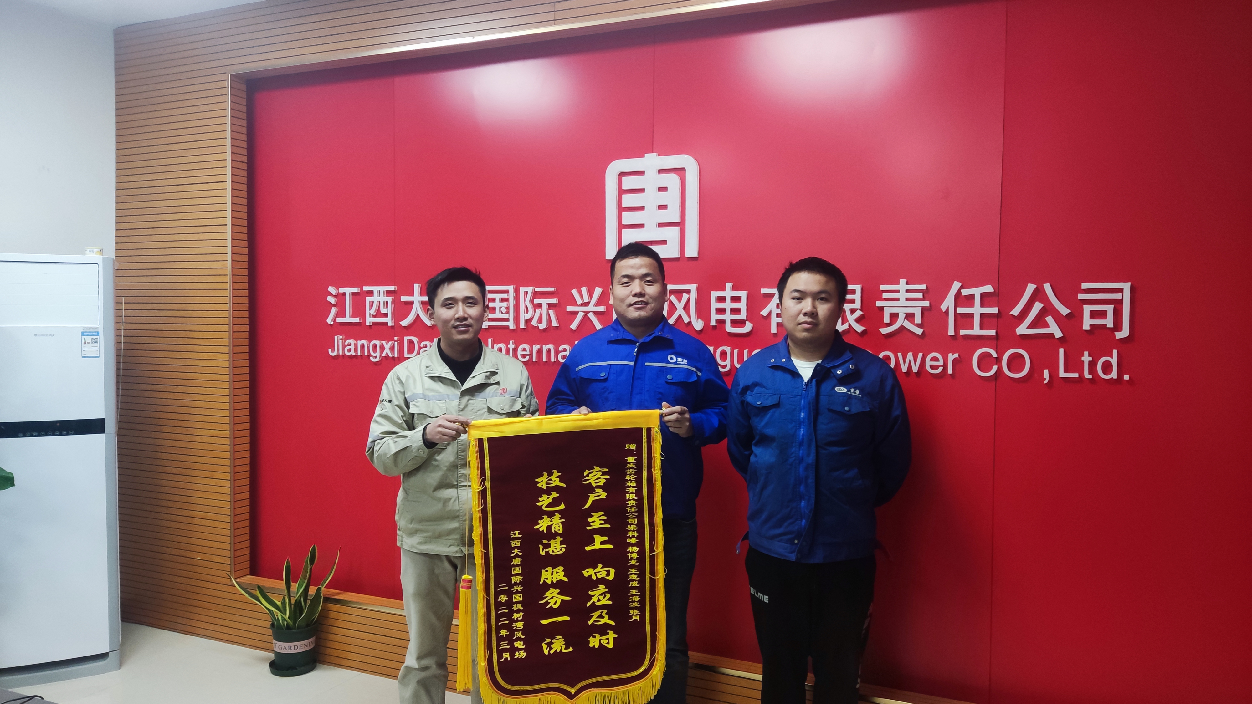 2022年3月8日,重齒公司獲得江西大唐云峰嶂風(fēng)電場(chǎng)贈予錦旗一面。錦旗寫(xiě)道:客戶(hù)至上、響應及時(shí),技藝精湛服務(wù)一流。這短短的16個(gè)字包含了梁科峰、楊博龍等五名運維同志連續多天的汗水和辛勞。在極端天氣凍雨影響,道路結冰、設備無(wú)法進(jìn)場(chǎng)作業(yè)等困難面前,他們各司其職,加班加點(diǎn),用最短時(shí)間圓滿(mǎn)完成消缺工作。他們辛勤付出、不辭辛苦、任勞任怨的工作精神,把業(yè)主的需求放在第一位的工作態(tài)度,得到了業(yè)主的高度認可,也為公司實(shí)現首季開(kāi)門(mén)紅匯聚了強勁的精神力量。